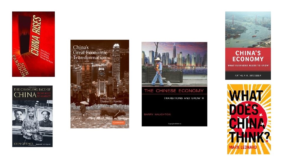 Post 1978 Economic Reforms Loren Brandt and Thomas Rawski (ed. ) – China’s Great Economic Transformation. Barry Naughton – The Chinese Economy: Transitions and Growth. Arthur R. Kroeber – China’s Economy: What Everyone Needs to Know. John Farndon – China Rises. John Gittings – The Changing Face of China. Mark Leonard – What does China Think? Jonathan Fenby – Tiger Head, Snake Tails: China today, how it got there and why it has to change.