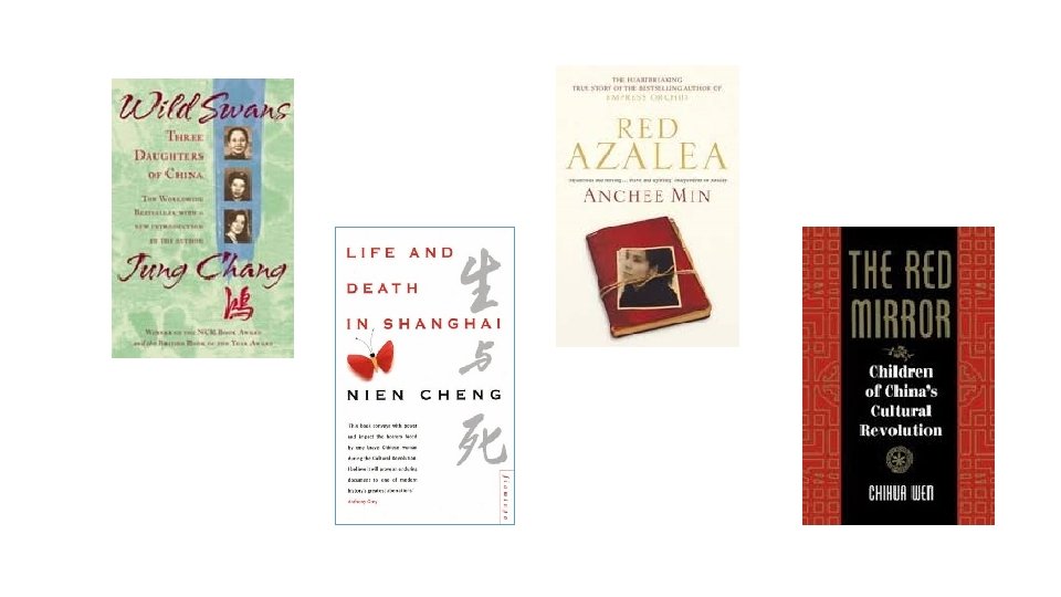 Cultural Revolution Jung Chang – Wild Swans Anchee Min – Red Azalea Nien Cheng – Life and Death in Shanghai Chihua Wen – The Red Mirror: Children Of China's Cultural Revolution