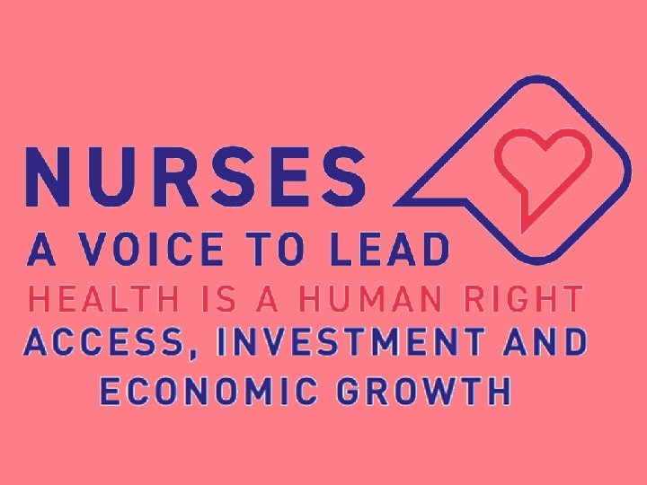 • ''Zdravlje je stanje potpunog tjelesnog, duševnog i socijalnog blagostanja, a ne samo odsustvo bolesti i iznemoglosti. '' • 1948. UN - "Deklaracija o ljudskim pravima" – Postavljen je zajednički standard za sve ljude i sve nacije – Jednako primjenjiva na sve ljude gdje god se nalazili ZDRAVLJE JE TEMELJNO LJUDSKO PRAVO – Nedostatak dostupne i pristupačne zdravstvene skrbi postoji diljem svijeta • Medicinske sestre imaju vrlo važnu ulogu u ostvarivanju prava na zdravlje. – Svi ljudi imaju pravo na dostupnu i kvalitetnu zdravstvenu skrb kada im je potrebna – Pravo na zdravlje vrijedi i za medicinske sestre – Sigurna i pozitivna radna okolina, sustav nagrađivanja, pristup resursima, informacijama te edukacija utječu na poboljšanje kvalitete i sigurnosti za pacijenta – "Investment in nursing leads to economic development, improving conditions in which people live leads to cohesive society and productive economies. " – Uvjeti u kojima je pojedinac rođen, odrasta, živi i radi imaju prevladavajući učinak na razvoj bolesti i prijevremenu smrt – Liječenje se usredotočava samo na patološku komponentu stanja čovjeka s posljedičnom štetom na njegovu dobrobit u smislu šireg utjecaja na područja njegova osobnog, društvenog , političkog i ekonomskog života – Usmjeravanje na holistički pristup i pacijentu orijentiranu skrb – Zdravstveni sustav je esencijalni element zdravog i pravednog društva – Višestruki utjecaj zdravlja na normalno funkcioniranje pojedicna i zajednice – Pravo na zdravlje mora i treba biti korišteno kao konstruktivni alat za zdravstveni sustav da osigura najbolju skrb za pojedinca i zajednicu – S aspekta ljudskih prava, pravo na zdravlje podrazumijeva da svaki pojedinac, bez obzira gdje živi ima pravo na zdravstvenu skrb sukladno svojim zdravstvenim potrebama – Dobrobit pojedinca i zajednice u centru je zdravstvenog sustava
