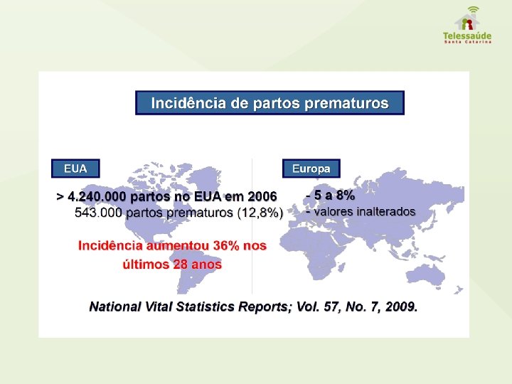 Prematuridade é um problema de saúde pública! • No mundo, 15 milhões/ano de prematuros. Deste grupo, cerca de 10 milhões nascem em países pobres; • 10 países contabilizam 60% dos nascimentos pretermo: o Brasil é décimo, enquanto que os EUA estão em sexto, sendo a Índia o primeiro lugar. Atualmente, nós temos quase 300. 000 pretermos/ano; • Pretermos - antes de 32 semanas (1 a 2% das gestações). Respondem por 60% da mortalidade perinatal e metade dos desfechos neurológicos desfavoráveis; • Na Grande Florianópolis, temos aproximadamente 9, 5% de partos prematuros.