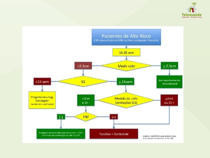 Para levar pra casa • Identificar pacientes de risco • Idealmente Instituir rastreamento universal da prematuridade através da medida ultrassonográfica do colo • Toque vaginal em pacientes assintomáticas no pré-natal não traz benefício • Encaminhar grupos de risco para hospital terciário (pré-natal de ALTO RISCO) • Evitar intervenções desnecessárias em pacientes sintomáticas • Rastrear Streptococo B hemolítico • Uma vez que o parto se avizinhe inevitavelmente, usar corticoide e sulfato de magnésio no hospital de referência • Colo curto e mau passado obstétrico de prematuridade: iniciar progesterona, capaz de reduzir ao menos 40% dos partos pré-termo anteriores a 34 semanas