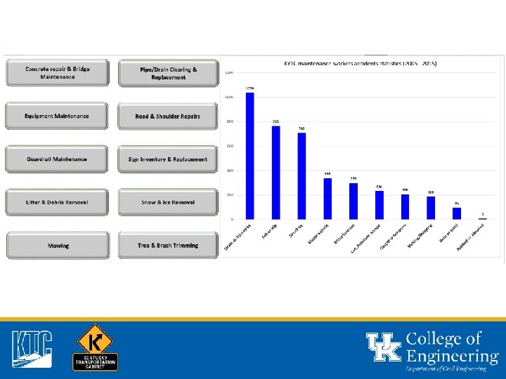 KYTC Maintenance Safety Snapshot • >15% RIR for maintenance employees • Averaged 6 injuries per week in 2015 • Safety Programs Past Focus • Lagging indicators, no leading indicators • What can we do? What should we do?