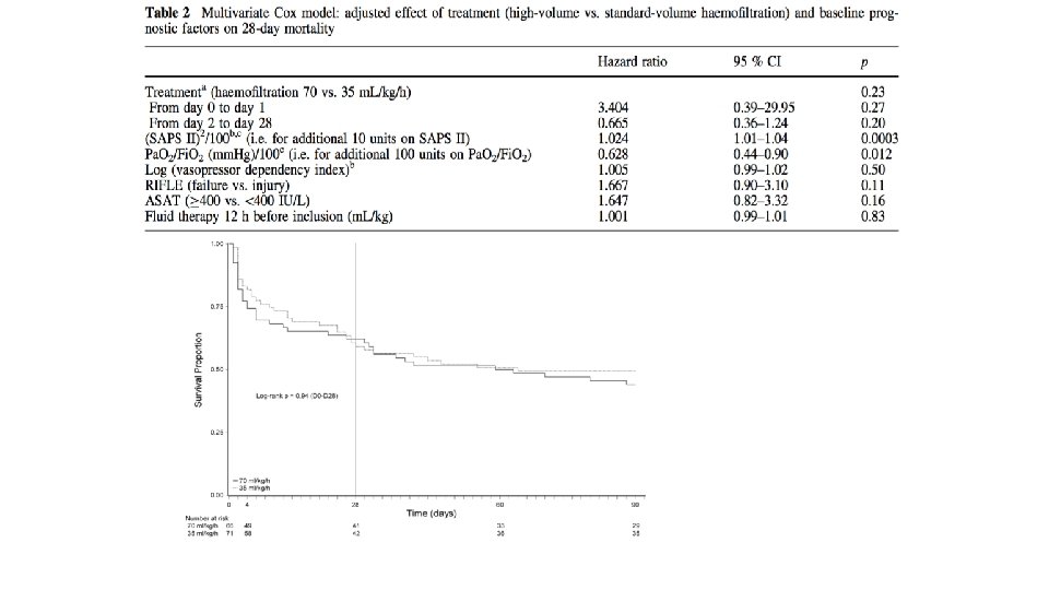 • Median interval between the start of EGDT and commencement of CRRT - 26. 4 hours • 28 day mortality for all patients – 43. 3% • 28 - day all-cause mortality rate : Early CRRT – 7. 9 hours Late CRRT – 61. 5 hours Late CRRT 56. 7% Early CRRT 30. 0% Higher mortality risk in the late group remained significant even after adjusting for diabetes mellitus, liver failure, and APACHE II scores (hazard ratio, 2. 461) Early initiation of CRRT stratified by the interval between the time of EGDT enrollment and start of CRRT was an independent predictor of increased patient survival. J Crit Care. 2016 Oct; 35: 51 -6. doi: 10. 1016/j. jcrc. 2016. 04. 032. Epub 2016 May 4. Can early initiation of continuous renal replacement therapy improve patient survival with septic acute kidney injury when enrolled in early goal-directed therapy? Oh HJ 1, Kim MH 2, Ahn JY 2, Ku NS 3, Park JT 1, Han SH 2, Choi JY 2, Han SH 1, Yoo TH 1, Song YG 2, Kang SW 1, Kim JM 2.