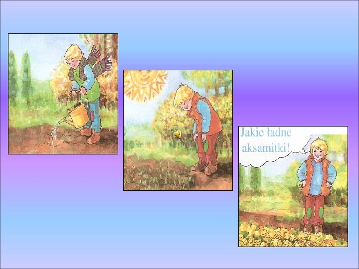 Prezentacja multimedialna Idzie wiosna idzie Soce przyprowadzio ma Slides: 18 Download presentation Prezentacja multimedialna Idzie wiosna, idzie… Słońce przyprowadziło małą Wiosnę za rękę, Wiosna ma dopiero jeden dzień, zielone włosy i piękną sukienkę. WIOSNA Pierwszy dzień wiosny - 21 marzec Miesiące wiosenne to: • • marzec kwiecień maj czerwiec Zwierzęta budzą się ze snu zimowego Niedźwiedź Borsuk Świstak Jeż Suseł Ptaki wracają do Nas z ciepłych krajów Ten ptaszek, choć tak malutki, wielkie na niebie czyni kółka, Jaskółka a nazywa się … Nogi ma czerwone, cienkie jak patyki, a po nasze żabki przybył aż z Afryki. Bocian Ze „słownika” wyjmij literkę „n” a zaśpiewa Ci pięknie ptaszek ten. Słowik Słońce mocniej świeci, zielenią się łąki, w górze już śpiewają wesołe … Skowronek Siedzi sobie na buku Woła kuku Kukułka Wiosną budzi się przyroda i rozkwitają kwiaty Przebiśniegi Krokusy Zawilce Te kwiaty są pod ochroną i nie można ich zrywać !!! Żonkile Tulipany Fiołki W ogrodzie wyrosły 3 tulipany i 3 krokusy. Ile kwiatów będzie w ogrodzie? 3 + 3 = 6 Wiosna dociera również do ogrodu, a tam trwają już pierwsze wiosenne prace Narzędzia niezbędne w ogrodzie Mamy ostre zęby, ale nie gryziemy chwasty wybierzemy, ścieżkę uczeszemy Grabki Zrobię dołek, zrobię rów, to usypie kopczyk znów. chwyć mnie mocno, oprzyj nogę, cały ogród skopać mogę Łopata Jakie to naczynie dziurawe z przodu, gdy tylko przyniesiesz do ogrodu, zaraz nad kwiatami zalewa się łzami Konewka