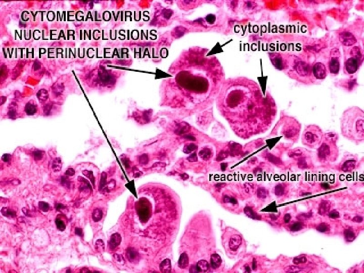 CMV se replica doar in fibroblaste (nu in celulele epiteliale). Are ca efect citopatologic incluzia intranucleara si intracitoplasmatica intro celula de dimensiuni mari
