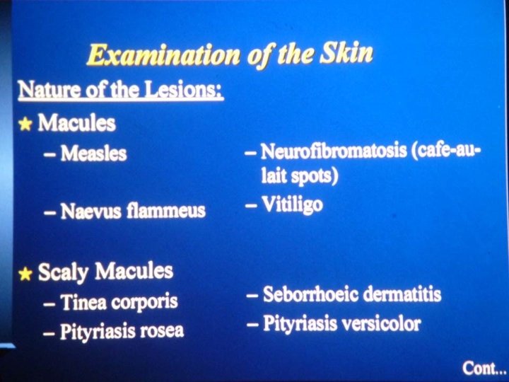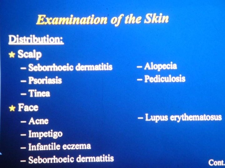 Psoriasis: scaly patchis that bleeds upon removal known as auspitz’s sign. Guttate psoriasis: is milder form seen in children after throat , it causes guttate spots.