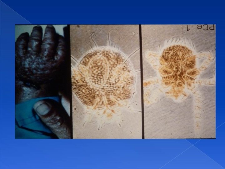 Scabies: it is caused by mite Sarcoptes scabiei. It causes severe itching and ulceration, positive family history of itching. Itching is the hallmark of the disease.
