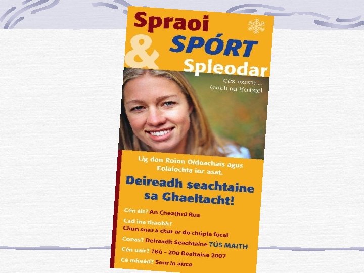 Teanga: Gaeilge páistelárnach - téamaí cumarsáid a bheith mar sprioc taitneamhach 7 réalaíoch don pháiste an páiste gníomhach san fhoghlaim níos mó saoirse - ábhar -straitéisí teagaisc agus foghlama léitheoireacht – Rang 2 scríbhneoireacht – Rang 2