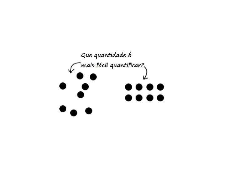 Subitizing • Deriva da palavra latina subitamente. • Capacidade de quantificar um conjunto subitamente. • Esse processo de quantificação se torna mais fácil se os elementos estão organizados. • Essa “figura” organizada chama-se constelação.