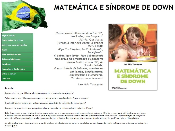 Primeiras noções numéricas das crianças: Estudo de caso pelas crianças com síndrome de Down Leo Akio Yokoyama Professor do Colégio de Aplicação da UFRJ Doutor em Educação Matemática - UNIBAN (Anhanguera)