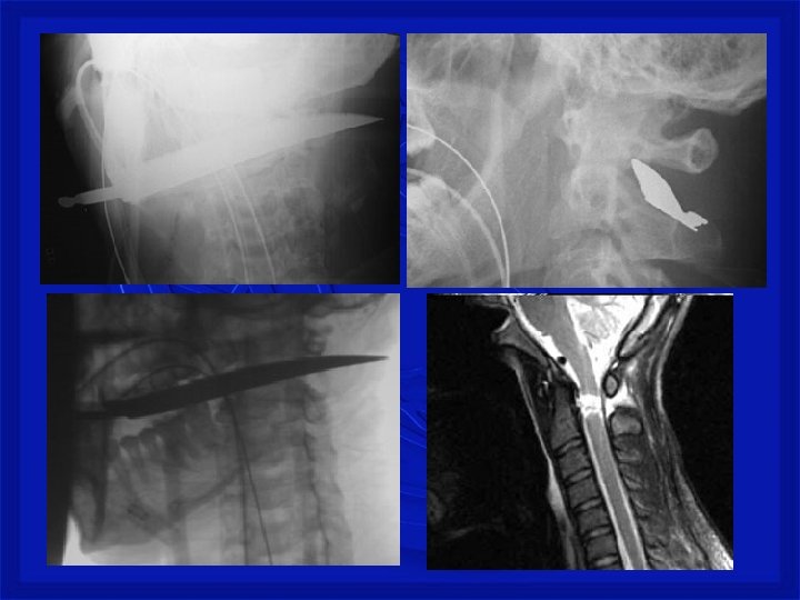 Mecanismo de Trauma Raqui. Medular Penetrante • Perfuração da coluna (arma branca, tiro ou estilhaço de bomba na coluna) • Lesão medular completa ou incompleta, associada ou não a lesão dos nervos espinhais e/ou tronco dos plexos nervosos. • Quadro neurológico é variável.