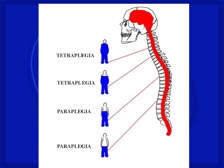 TRM – Traumatismo Raqui. Medular • Paraplegia – paralisia de ambas as pernas • Quadriplegia ou Tetraplegia – paralisia de ambos os braços e pernas • Hemiplegia – paralisia do braço e perna do mesmo lado