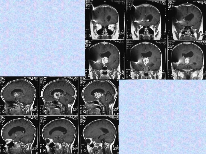 • A 2006. szeptember 27 -i MRI összevetve a 2005. november 16 -i MRI-vel: a halmozás amorf formájú növekvő tumor masszát mutat mindkét frontális kamraszarvban. A kamrarendszer továbbra is tág. A caudalis durazsák halmozó tumor masszával kitöltött.