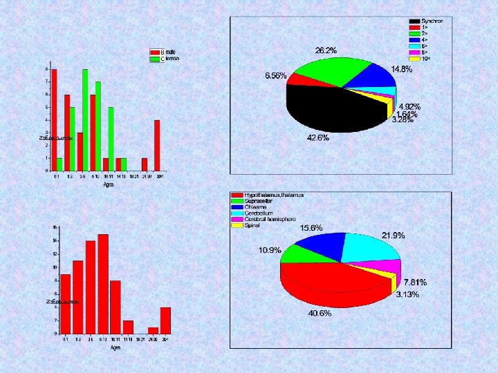 (Primer) diffúzan disszeminált pilocitás asztrocitóma • Ritka entitás • Általában megelőzi a szoliter góc • Vagy van kiindulási gócként azonosítható szoliter tumor, szinkron felfedezés • Irodalmi adatokban még a disszeminált forma is ritka (67) primer disszeminált (1)