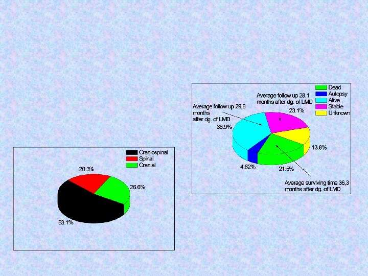 • 1998. december 10 -én arachnoideális biopszia történt szuboccipitális kraniotómiából, ami meningeális gliomatózist igazolt alacsony proliferációs indexszel. Szövettanilag pilocitás asztrocitóma igazolódott. Komplikáció, neurológiai novum nem lépett fel. A disszemináció miatt sugárterápia javasoltak az egész koponyára és gerincre. • A gyermek kemoterápiában részesült 1999. februárjában és márciusában, a sugárterápiát 1999. júniusában és júliusában kapta. • A 2000. április 10 -i MR változatlan craniális és spinális állapotot mutat. Neurológiai novum nem alakult ki.