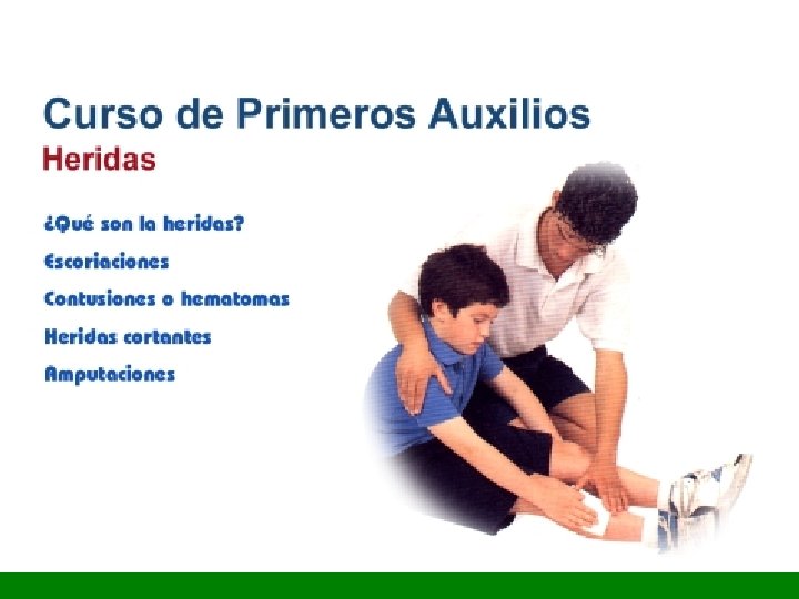 heridas • Si las heridas son producidas por agresión o por elementos oxidados o sucios es mejor acudir a un establecimiento de salud • En este tipo de heridas es necesario aplicar una vacuna antitetánica