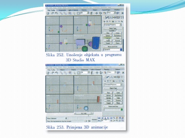 3 D Studio МАХ �je program koji služi za: prikazivanje objekata u ortogonalnoj projekciji i u perspektivi, transformisanje i modifikovanje, kloniranje i različite efekte sa 3 D objektima. �Programski alati omogućavaju postavljanje kamere, svjetla, dodavanje materijala sa teksturama objektima, animacione kontrole, upotrebu putanja objekata, dodavanje kontrola pokreta, animaciju i inverznu animaciju.