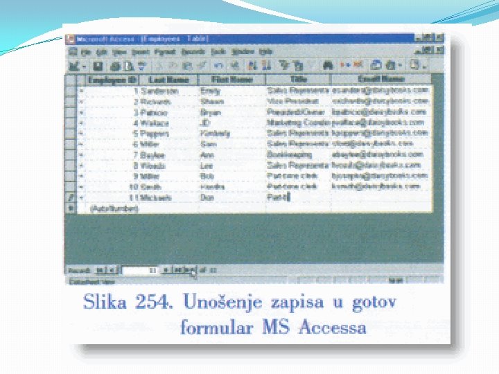 BAZE PODATAKA Microsoft Access je program za skladištenje velike količine podataka. Omogućava jednostavno pretraživanje, izvještavanje i štampanje. Program nudi organizovanje informacija, rad sa tabelama i formularima, modifikovanje tabela, kreiranje formulara, postavljanje upita, sortiranje, kreiranje i rad sa izvještajima, uvoženje i izvoženje podataka.