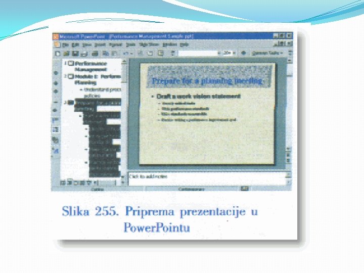 SOFTVER ZA PREZENTACIJE �Power. Point je program koji omogućava prezentaciju tekstualnih, tabelarnih, grafičkih, video i animiranih sadržaja obogaćenih zvukom. �Slajdovi sa multimedijalnim sadržajima se lako prezentuju automatskim ili ručnim putem (klikom, pritiskom na taster Enter). �