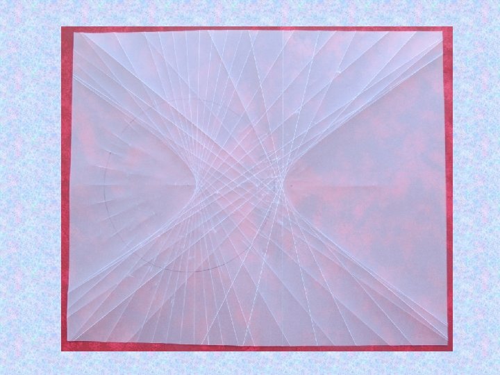 L’iperbole Iperbole avente asse trasverso= raggio L’iperbole è la linea di inviluppo della famiglia di pieghe se per ciascuna di esse: 1) esiste un punto della piega che appartiene all’iperbole 2) in tale punto la piega è tangente all’iperbole