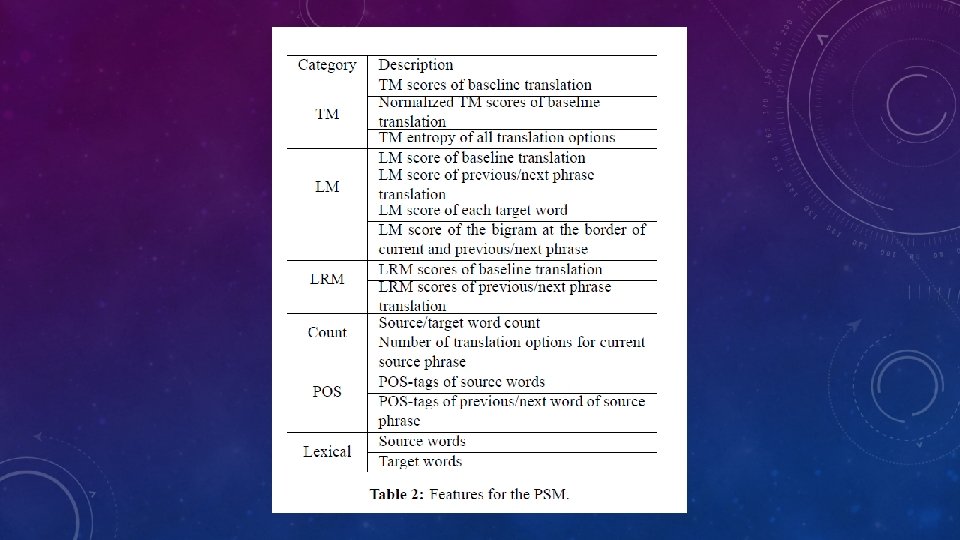 The Picking Suggestion Model (PSM) • determine whether the phrase is difficult-to-translate. • determine whether the current translation option is correct.