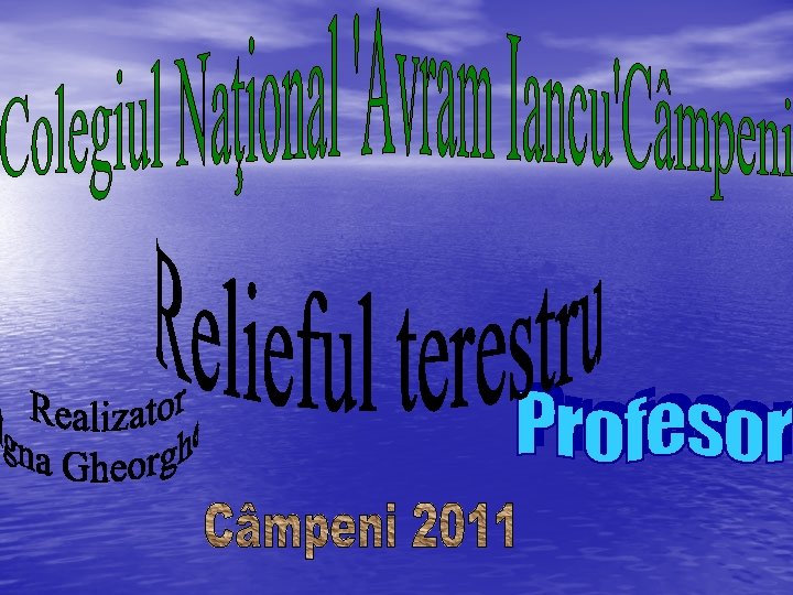 Prin relief se inţelege orice neregularitate a suprafeţei Pământului. Această accepţiune se referă la neregularitaţi foarte mici cât si la marile denivelări ale scoarţei terestre. Dacă privim un glob terestru observăm că există două mari deniivelări ale scoartei terestre : oceane şi continente.