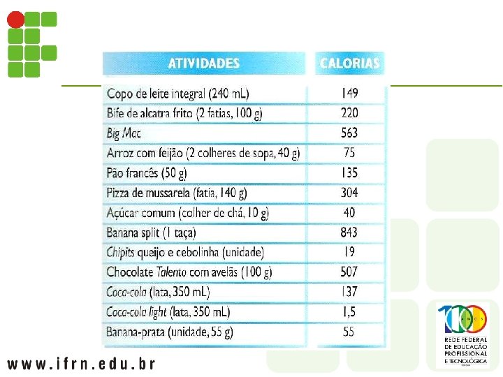 SAIS MINERAIS – ALIMENTOS RICOS EM CÁLCIO Alimento (100 gramas) mg Medida caseira 40000 1 colher de chá Farinha de peixe 4600 1 colher de sopa Tomilho 2000 1 colher de sopa Semente de papoula 1333 1 colher de sopa Semente de cominho 833 1 colher de sopa Queijo prato 833 1 fatia média Queijo Minas 666 1 fatia média Alga ágar-ágar 600 2 colheres de sopa Folha de mandioca 458 3 colheres de sopa Farinha de soja 200 1 xícara Iogurte desnatado 176 1 copo Castanha do Pará 166 1 porção Leite integral 116 1 copo Tofu 100 1 fatia média Casca de ovo