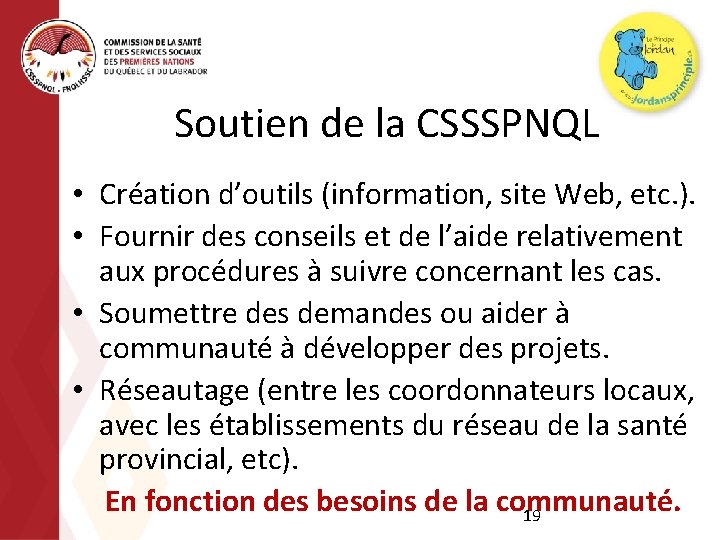 Plan • Principe de Jordan – Historique – Objectifs – Comment soumettre une situation • Soutien de la CSSSPNQL