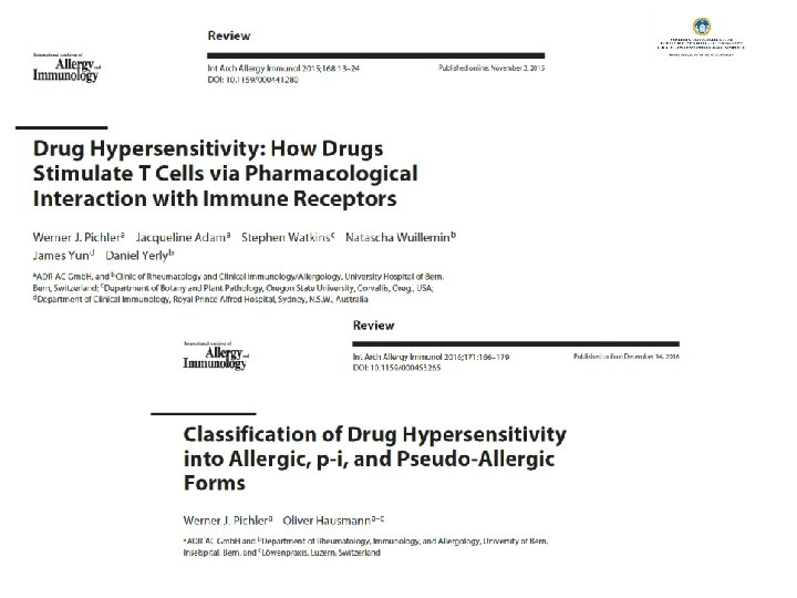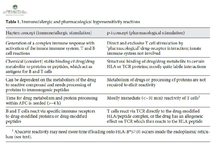 Interazione farmacolinfociti T Pichler W. Delayed drug hypersensitivity. Ann Intern Med 2003; 139: 683 -93