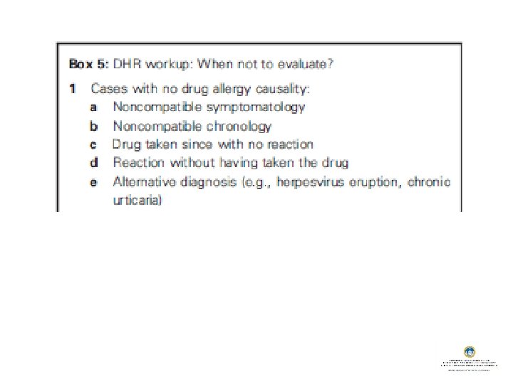 • In caso di sintomi scarsamente suggestivi • Per individuare farmaci alternativi (test di tolleranza!) • Per escludere cross-reattività (beta-lattamine) • In caso di più farmaci coinvolti in una stessa reazione • In caso di esame allergologico negativo (rash cutanei da aminopenicilline nei bambini)