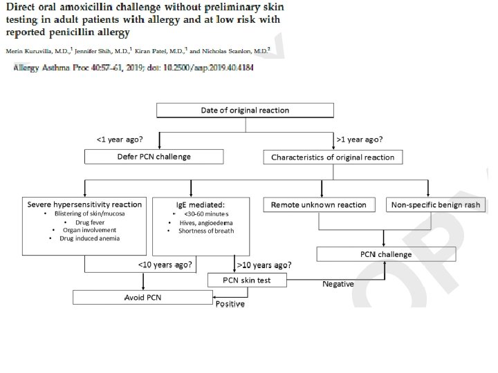 Take home message Se ci si basa solo sulla storia clinica, la prevalenza dell’ipersensibilità alle penicillina è sovrastimata (almeno l’ 80% delle autodiagnosi sono errate). In caso di urgenza (nei pazienti con diagnosi accertate o con storia clinica fortemente suggestiva): - utilizzare i carbapenemi nei pazienti con allergia alle penicilline; - le cefalosporine di più recente generazione (ceftriaxone, cefuroxima, cefepime) hanno bassa cross-reattività con le penicilline (restano comunque più sicuri i carbapenemi) - i pazienti con allergia alle cefalosporine sono maggiormente a rischio di cross-reattività rispetto a quelli con allergia alle penicillina - i test cutanei hanno un valore predittivo negativo pari a quasi il 100%!
