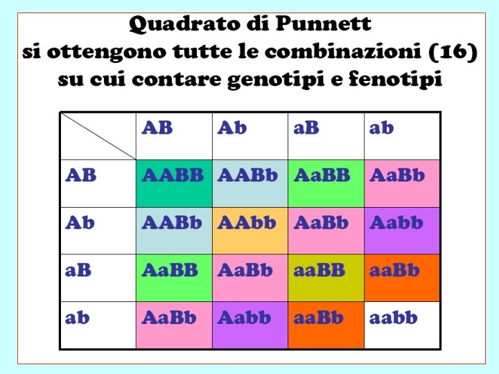 Diibrido: 2 caratteri Segregazione in F 2: 9: 3: 3: 1 3) Assortimento indipendente