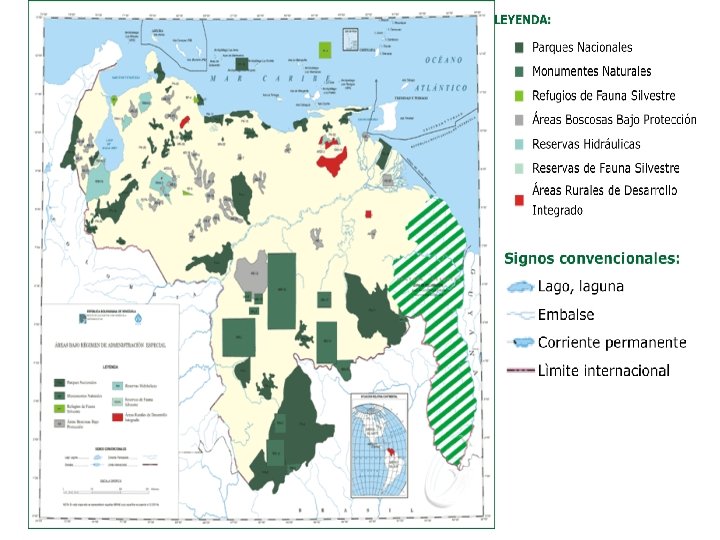Son zonas especiales de acuerdo a sus características y potenciales ecológicos que han sido decretadas por el Ejecutivo Nacional para cumplir funciones productoras, protectoras y recreativas.