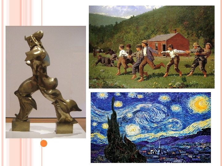 4. OPTICAL ARTan illusion used by non-objective works, which have no recognizable subject matter. OP ART-simply has repetitive patterns and lines. It became popular in the 1960’s, allowing viewers to see hidden images, flashing or vibration in the designs. The type of patterns created gives the impression of movement.