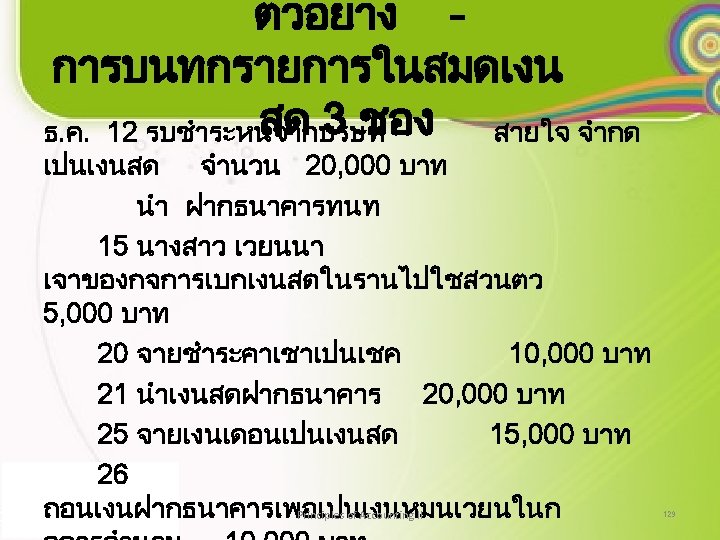 1. The Processing of Data Manual System 1. An accounting system can be defined as a set of records such as; -Journals, (สมดรายวน ) -Ledgers, (บญชแยกประเภท ) -Trial balances (งบทดลอง) -Work sheets, and (กระดาษทำการ ) -Financial reports, (รายงานทางการเงน /งบการเงน ) plus the procedures and equipment regularly used to process business transactions Principles of Accounting II 4