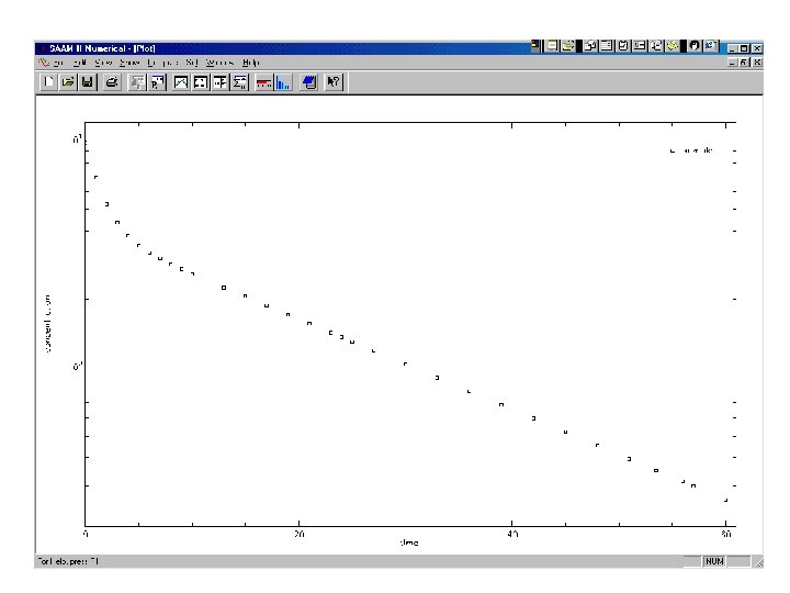 Noncompartmental versus Compartmental Approaches to PK Analysis: A Example • Bolus injection of 100 mg of a drug into plasma. Serial plasma samples taken for 60 hours. • Analysis using: – Win. Nonlin (“trapezoidal” integration) – Sums of exponentials – Linear compartmental model