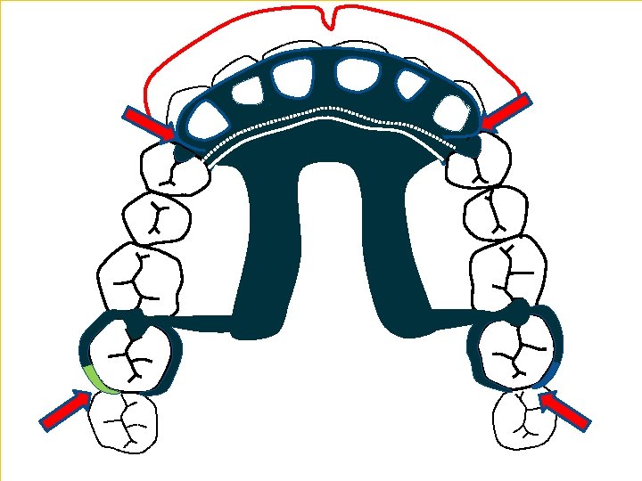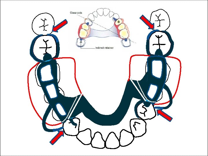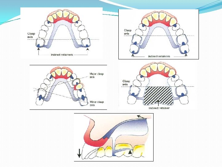 Bracing �The horizontal forces are resisted by placing rigid components of the denture (bracing components) against suitable vertical surfaces on the teeth and residual ridges. Parts of a denture resting against the stippled areas will resist the forces whose directions are shown by the arrows. It is important to appreciate that bracing occurs only when the denture is fully seated.