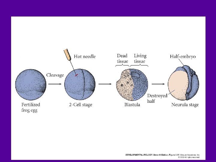 Conditional Specification Example (p. 58 -59) • Remove blastomeres from early frog embryo • Transplant from Dorsal (Back) side to Ventral (belly) side – The cells that were transplanted become Belly – What can we conclude about the commitment of those original cells before transplant?
