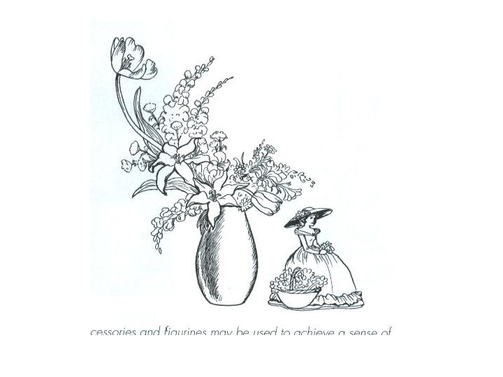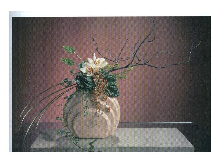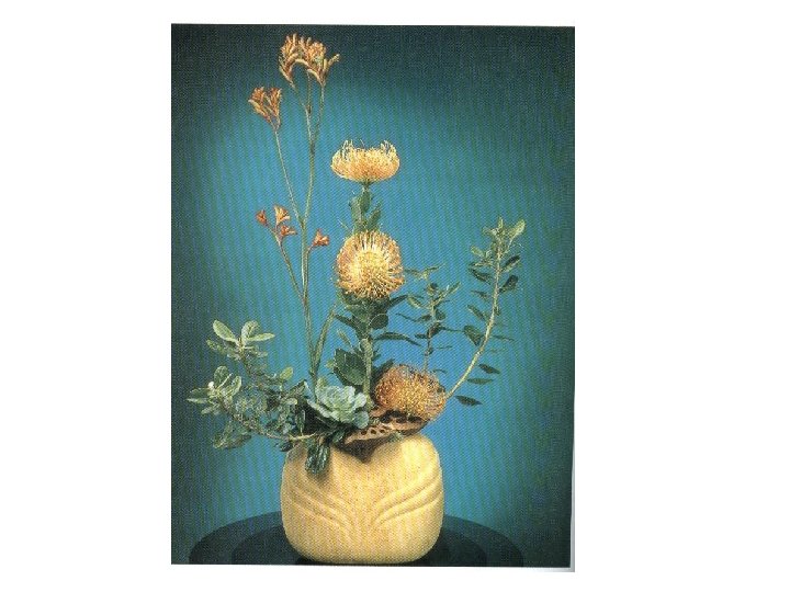 Balance l symmetrical balance—known as formal balance, flowers are repeated on opposite sides of the floral arrangement. Using an imaginary central axis, one side of the arrangement is the mirror image of the other. l Asymmetrical balance—known as informal balance. Formed by placing unequal visual weight on each side of a central vertical axis.