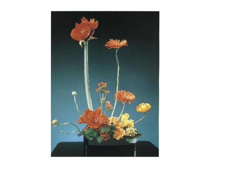 Depth l Three-dimensional arrangement ¡overlap or angle flowers ¡place bright, dark flowers on the bottom of the arrangement, lighter and smaller at the top