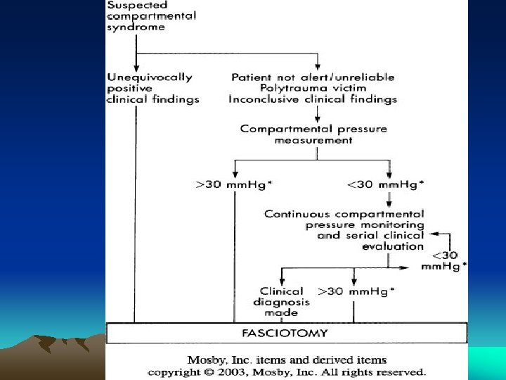 COMPLICATIONS • Compartment Syndrome : elevation of the interstitial pressure in a closed osseofascial compartment that results in microvascular compromise. • The most common causes of acute compartment syndrome are: • fractures,