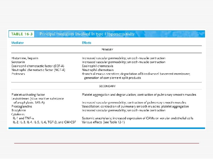 Type I Hypersensitivity o Allergens n n o Proteins Low molecular weight, soluble Atopy-Predisposition to type I hypersensitivity n n Higher levels of circulating Ig. E Greater numbers of eosinophils