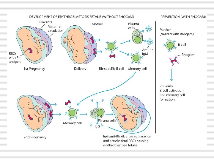 Type II Hypersensitivity o Erythroblastosis fetalis n n n Rh+ fetus born to Rh- mother First pregnancy sensitizes Subsequent pregnancies result in anti Rh Ab Mild to severe anemia in fetus Rhogam