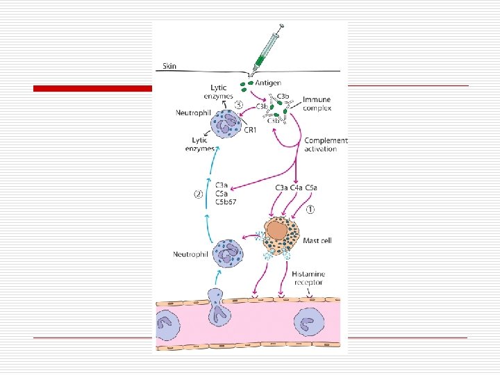 Type III Hypersensitivity o Arthus reaction n n Individual is sensitized to antigen Challenge is administered locally Reaction occurs locally Mast cell mediated