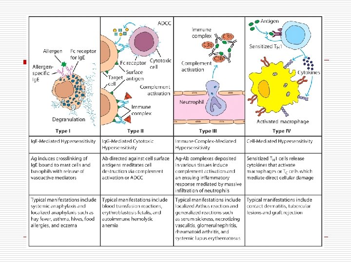 Four types of Hypersensitivity o Type III n n o Immune-complex mediated e. g. serum sickness Type IV n n T cell-mediated; delayed type e. g. tuberculin reaction
