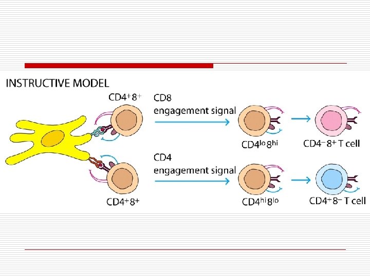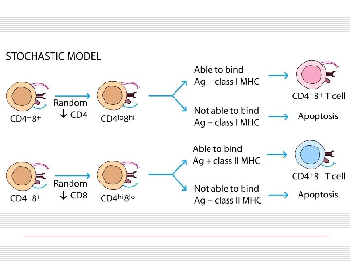 Double to Single Positive o o Two theories Instructive model n o Binding precedes down regulation of non dominant marker Stochastic model n n Random down regulation occurs before binding Nonbinders die via apoptosis