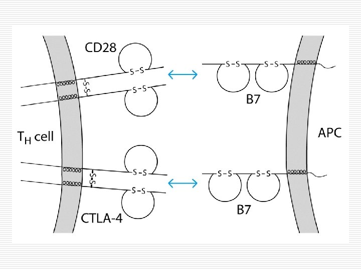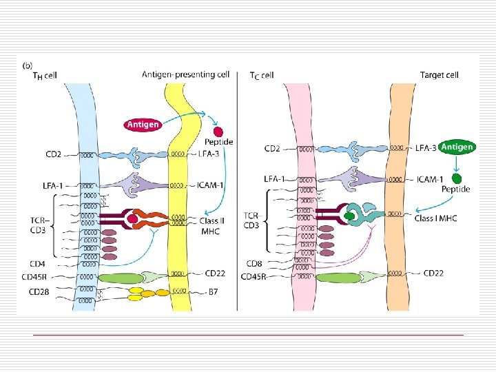 T Cell Activation o Initiation n n TCR-CD 3/MHC peptide complex interact Involvement of coreceptor o o n Co-stimulatory signal o n CD 4 to MHC II CD 8 to MHC I CD 28 to B 7 (TH Cells/APCs) Inhibitory role of CTLA-4