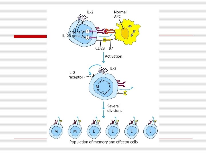 Differentiation o o o Occurs in secondary lymphoid tissue Activated cell becomes a blast cell IL-2 levels are increased 100 times Binds to IL-2 receptor on producing cell Takes several days to occur Effector cells and memory cells are produced