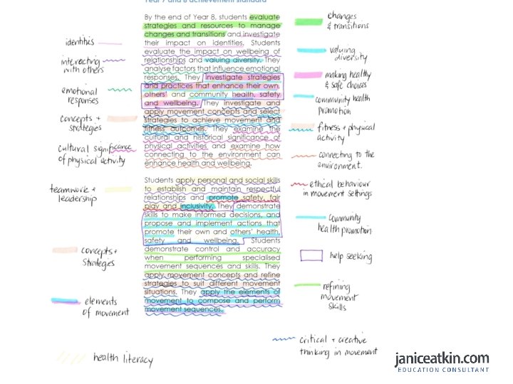 Step 2: identify elements of the achievement standard that address the understanding and skills you are teaching