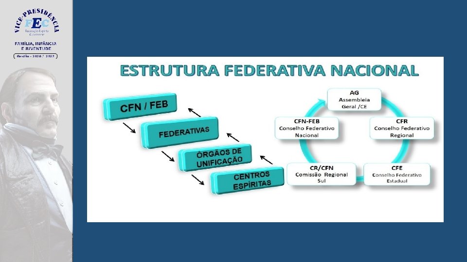 CFN Coordenadores Nacionais de Áreas Coordenadores Regionais Coordenadores Estaduais Centros Espíritas AE ME APSE FIJ ED Estrutura Federativa que Retroalimenta a Atividade